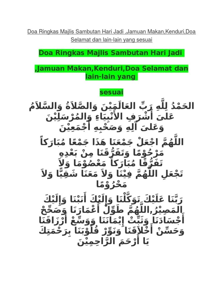 Jadi di sini saya nak kongsikan satu bacaan doa untuk majlis hari lahir. Himpunan doa, jpn kedah.doa majlis sambutan hari lahirya allah ya rahman ya rahim, dengan penuh rasa kesyukuran, kam. Doa selamat ini boleh dibaca pada majlis kesyukuran atau sebelum memulakan sesuatu program. Teks doa majlis kesyukuran rasmi yang sesuai untuk pelbagai acara seperti majlis harijadi, sambutan ulangtahun, perkahwinan, .